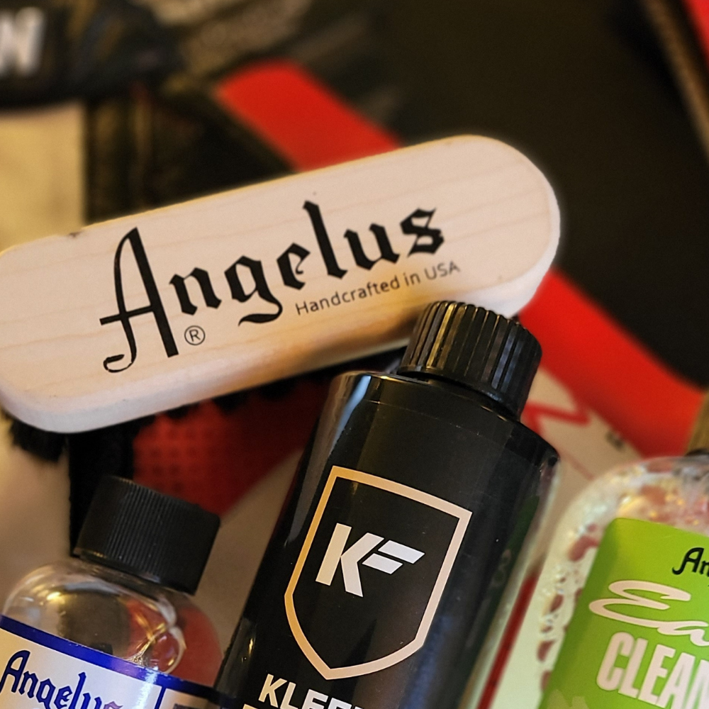 At this point we can get down to business on the leather itself. You can get more access to hard-to-reach areas by turning the leathers inside out as much as possible. Start by using a wet rag to wipe the leather to pull the salt up, then apply your desalter product pretty liberally. While we recommend the Angelus desalter product, you can accomplish similar results with a 50/50 mix of white vinegar and water. Using a soft brush, scrub the desalter solution into the suit with circular motions paying close attention to the armpits and groin area which tend to accumulate more sweat and therefore, salt. Once the desalter is brushed in, remove excess product using another wet towel.