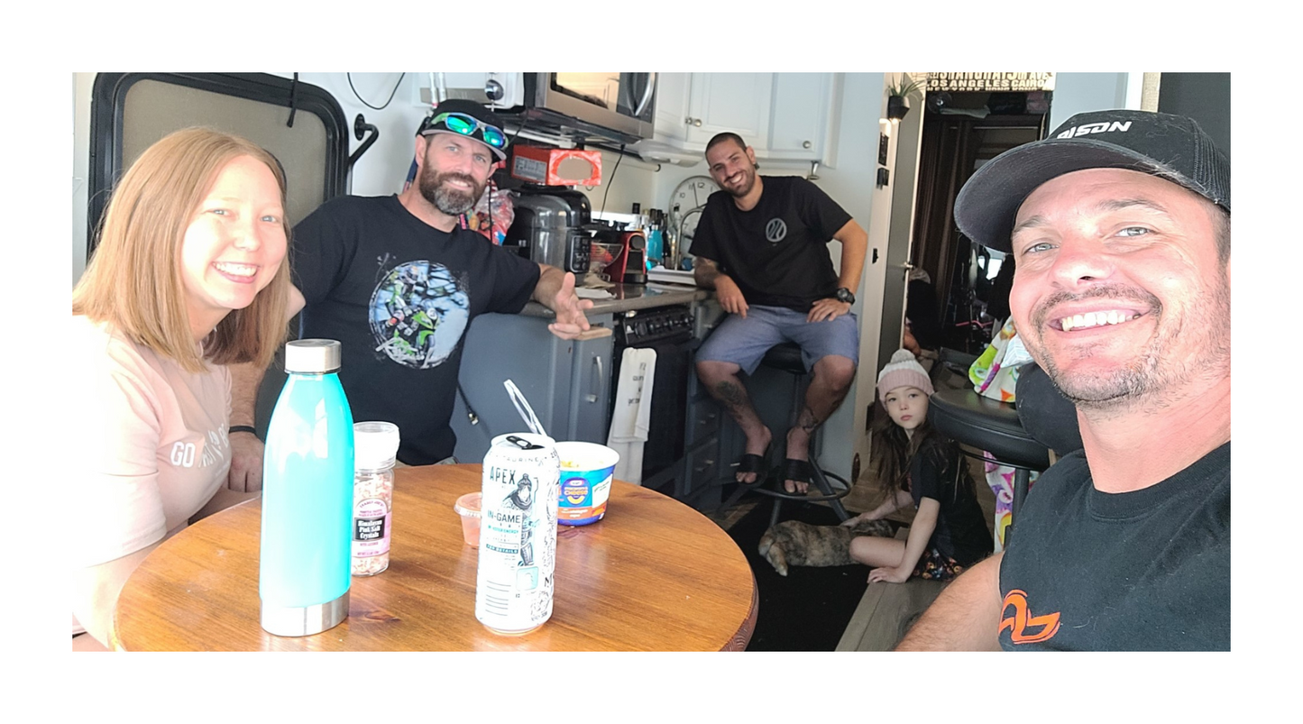 It has taken me quite a bit longer than normal to write this blog. With each paragraph I type, I sit here, tears streaming and reflect about another memory of Scott. My wife, Tosha, is in Kansas while I am in California. Living in an RV, traveling the US and growing a business together, Tosha and I don’t ever spend more than a day apart. In addition, this is the first MotoAmerica event we’ve missed in almost three years. With those things in mind, we are struggling with this loss even more than normal. We’ve texted each other a lot and exchanged our favorite photos and memories of Scott. As I type this, Tosha just texted me a screenshot of a conversation between her and Scott’s daughter Darian in which Darian asked about the mustache photo. Tosha told her the story about the black shirt and Darian replied “I have that. He was wearing it yesterday. I took it out of the trailer because it smells like him. Not gonna wash it.” Aaaand I’m bawling again.